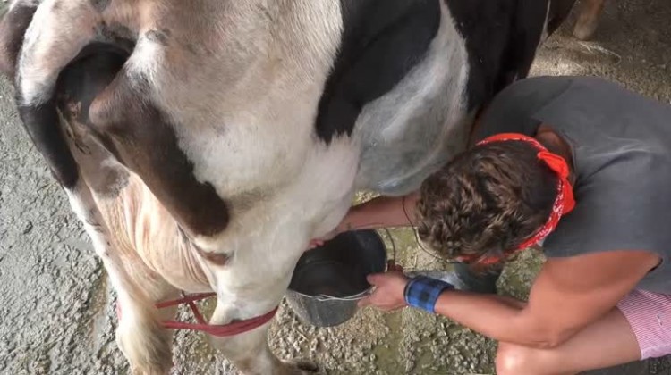 Victor ordenha a vaca e conversa com o bezerro - A Fazenda 13
