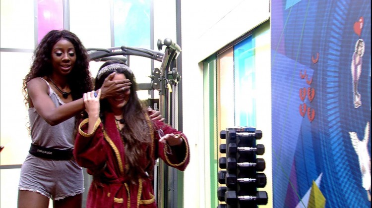 Após atualizar o avatar de Juliette no painel tático da academia do BBB21, Camilla de Lucas trás Juliette para o espaço, vendando os olhos da sister. A influenciadora pede para a advogada se sentar com cuidado e tira as mãos dos olhos dela.