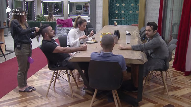 JonJon, Matheus e Rod Bala jogam com os grãos na mesa da cozinha da Mansão Power