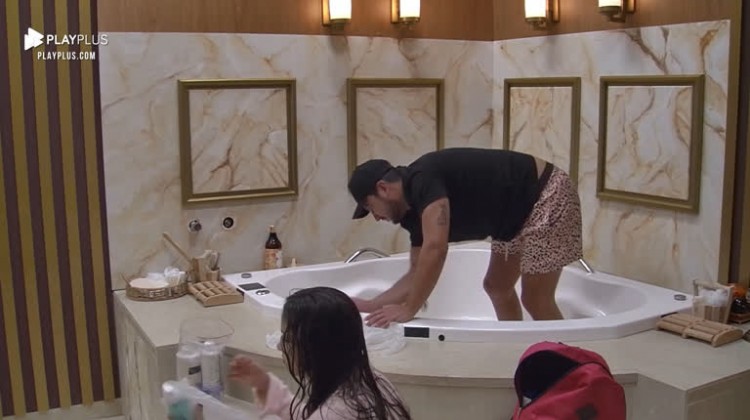 Thiago limpa a banheira antes de desocupar a Suíte Power - Power Couple Brasil 5