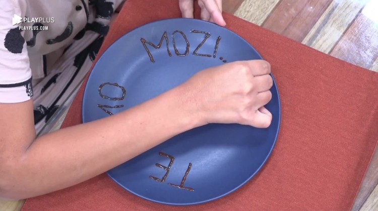 Ela fez uma tapioca e escreveu um recado com chocolate em volta