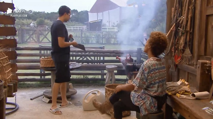 Segundo os peões, estar na baia é um desafio diário. Para tomar um banho quente, é necessário esquentar a água no fogão a lenha. Após algumas dificuldades, Lucas conseguiu acender o fogo, enquanto conversava com Lidi. .
