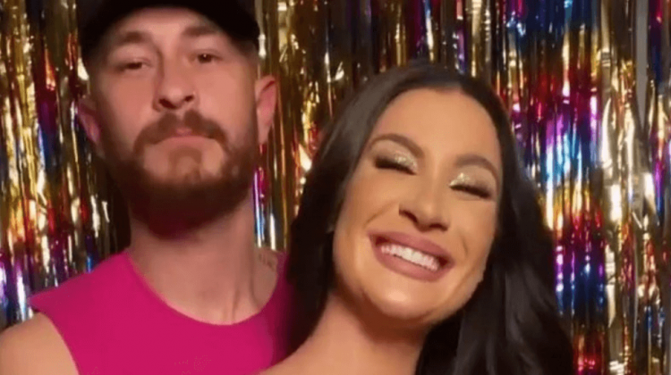Logo depois, a foto se transforma em uma atual, os dois se vestiram com uma roupa parecida, e a ex-BBB aparece mostrando o barrigão, também escrito Cris, dessa vez com o bebê realmente a caminho.