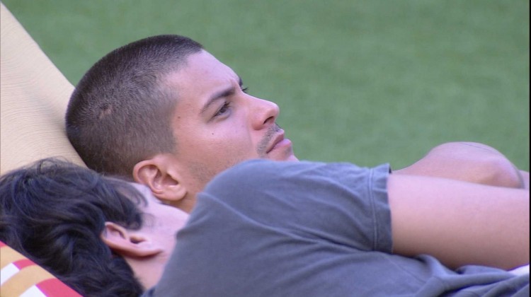Arthur Aguiar conversa com Eliezer na área externa da casa sobre sua estadia no Quarto Secreto, quando foi Eliminado no Paredão Falso.
