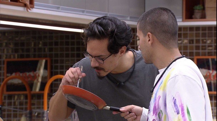 O ator pega uma panela para fritar ovos e reclama do cheio de cebola. "Está com cheiro", afirma. "Cebola impossível, não tem cebola. Não é pão, não?", destaca Eliezer. "Cheiro de cebola. Não está?", indaga o ator, mostrando a panela. "Está", concorda o empresário. "Que loucura. Vou passar uma água para tirar", afirma o brother.