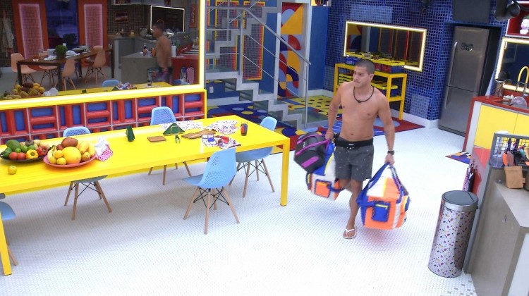 Arthur Aguiar guarda malas na despensa da casa do BBB 22