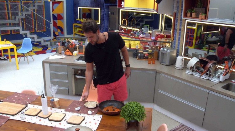 O brother acordou pouco antes das sete horas, sentou por alguns instantes no pufe da sala e seguiu para a cozinha da Xepa.