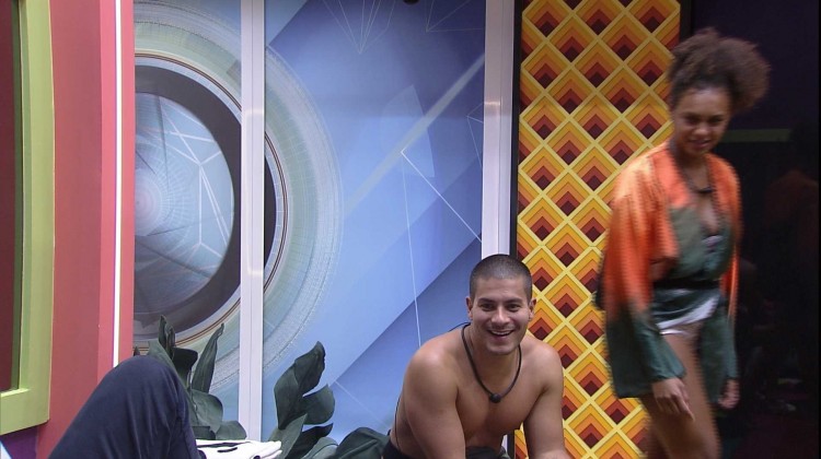 "Ele falou que se você quiser ele quer" comenta Arthur Aguiar. "Eu que falei isso para ele hoje", responde Jessilane. "Não, ele falou que lá fora é outra conversa", corrige Gustavo. "O que você falou?", pergunta Arthur Aguiar. "Eu falei para ele que eu estou brincando, mas se ele quiser, eu estou falando sério", conta a sister.