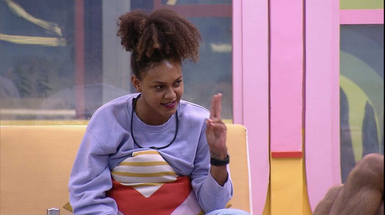 Mais cedo, a sister revelou estar ansiosa com seus '30 segundos' de defesa e comentou sobre a beleza do rapper Filipe Ret.