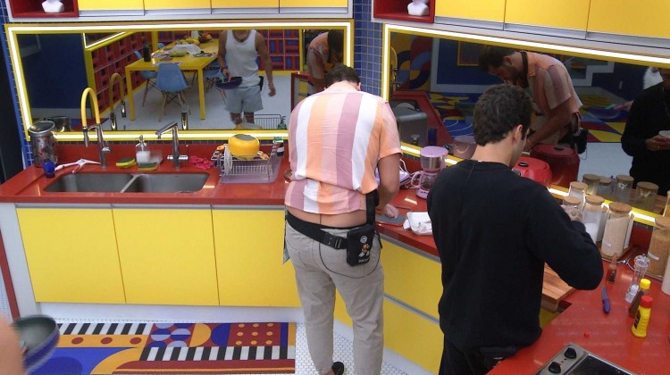 Na cozinha do BBB 22, os brothers repercutem a formação da berlinda desta sexta, 15/04. Jessilane especula sobre o Paredão quádruplo: "Já era difícil saindo um, imagina dois". "Que loucura", diz Paulo André.