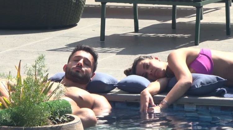 Na piscina, a modelo conversa com Fernando sobre o jogo
